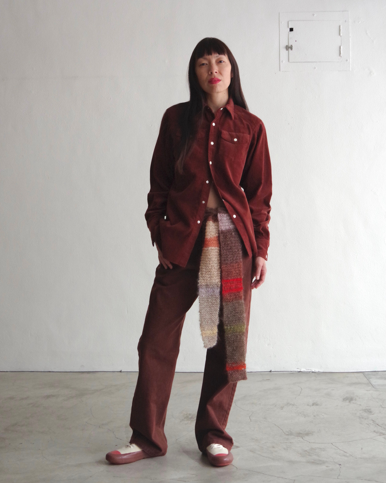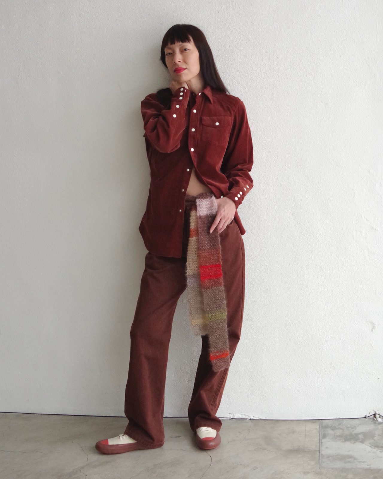 使用高品質棉紗織成的燈芯絨,布面具有自然光澤,紋理立體細緻。成品經過一次水洗與滾筒處理,展現柔軟自然的質感。