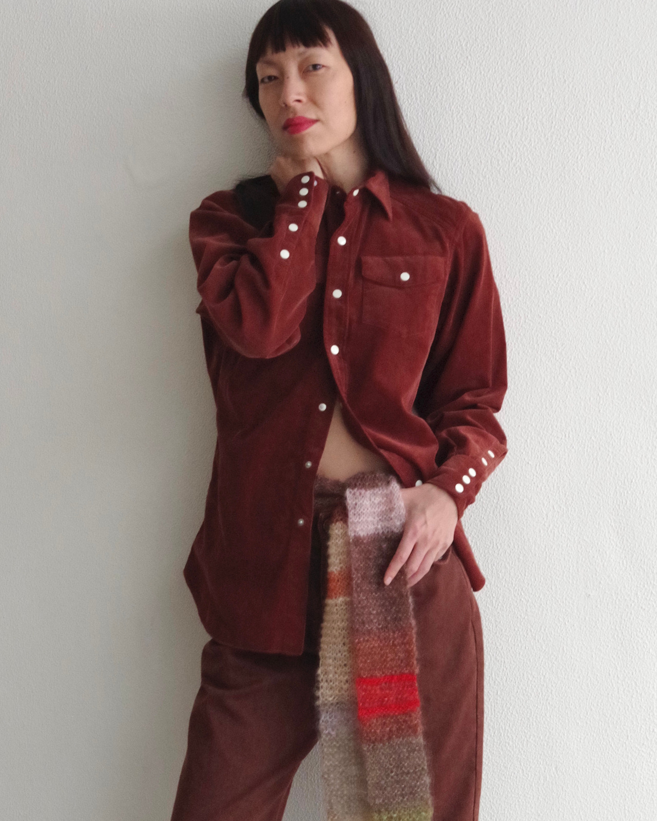 背部採用西部襯衫常見的山形裁片,增添復古氛圍與線條感。