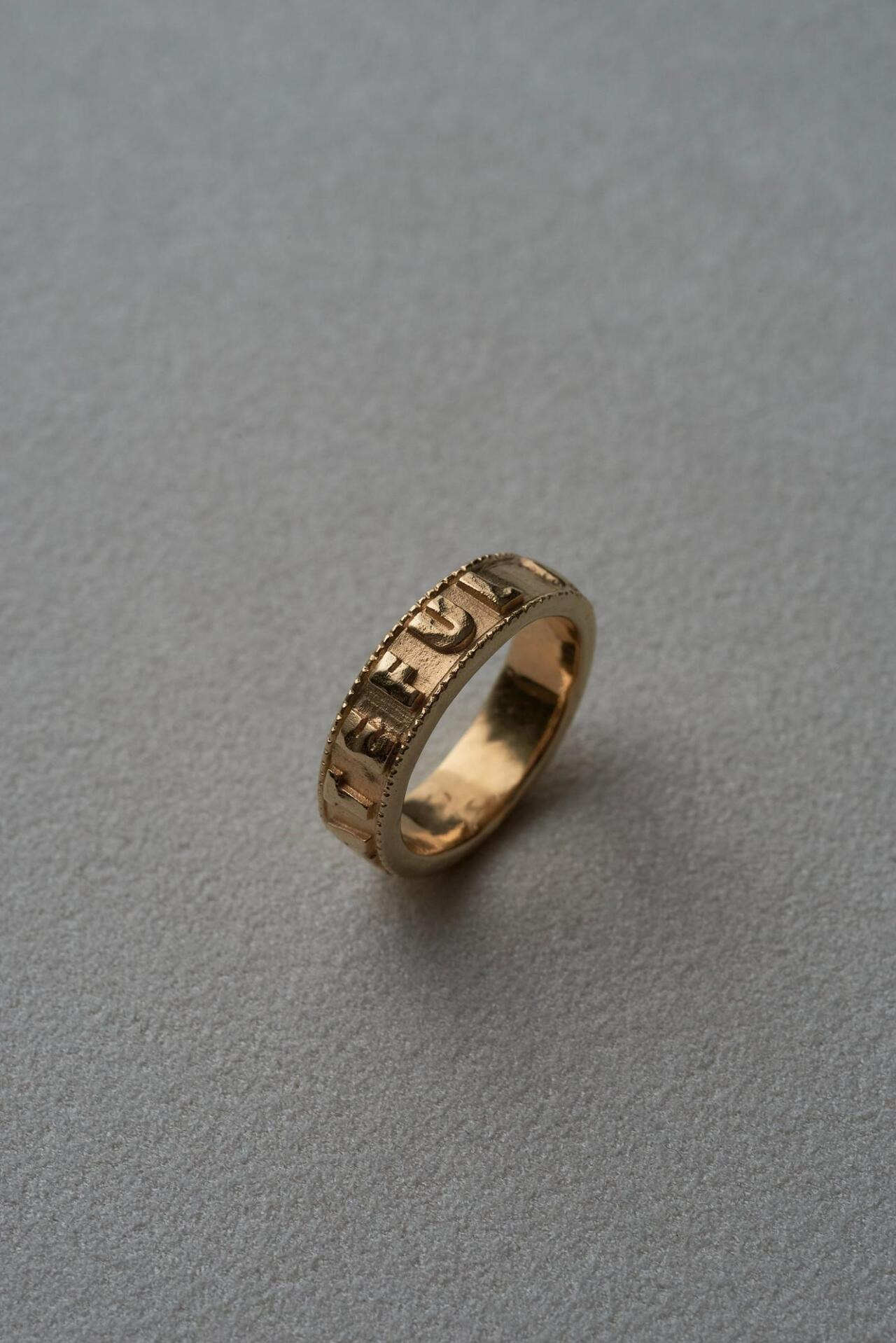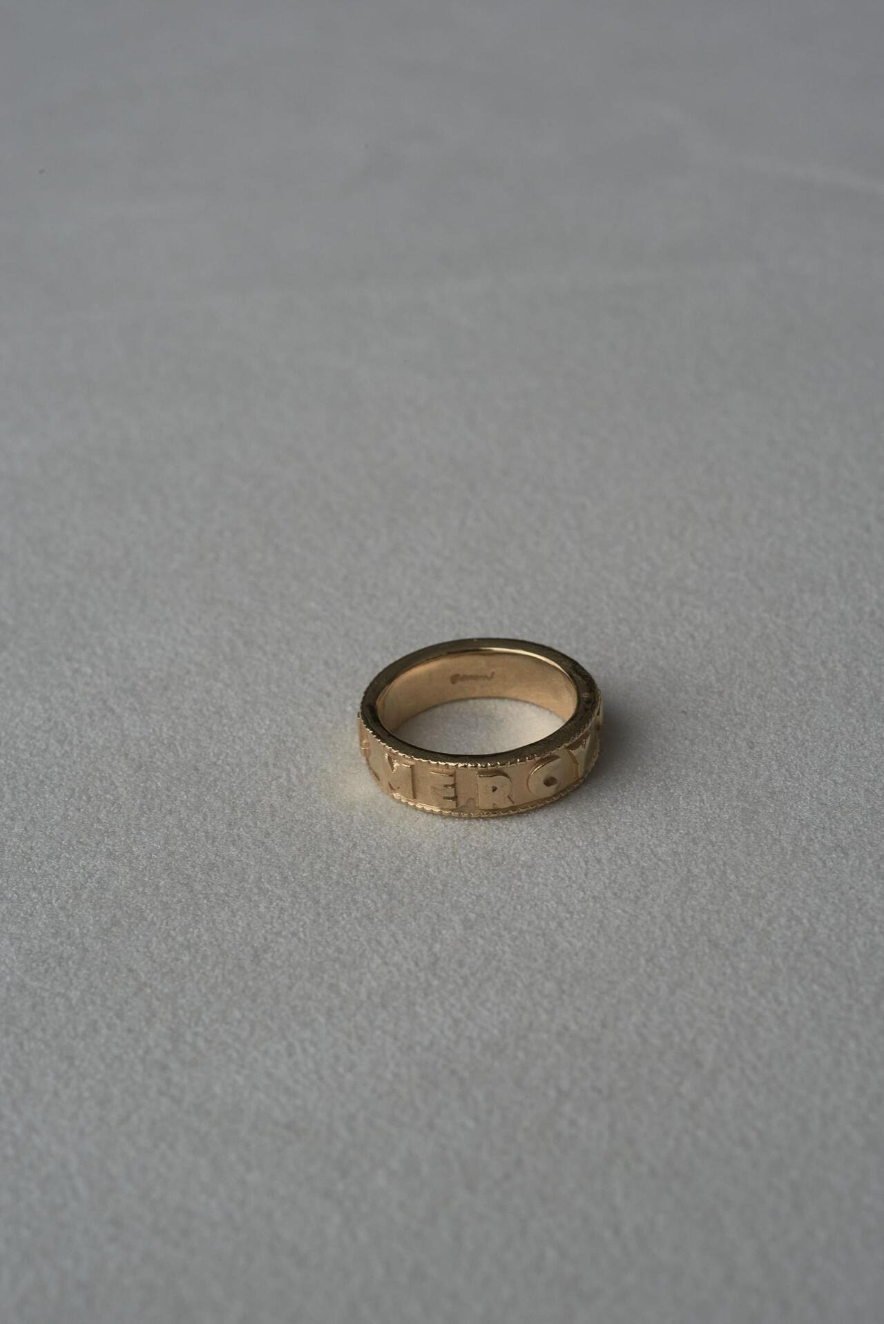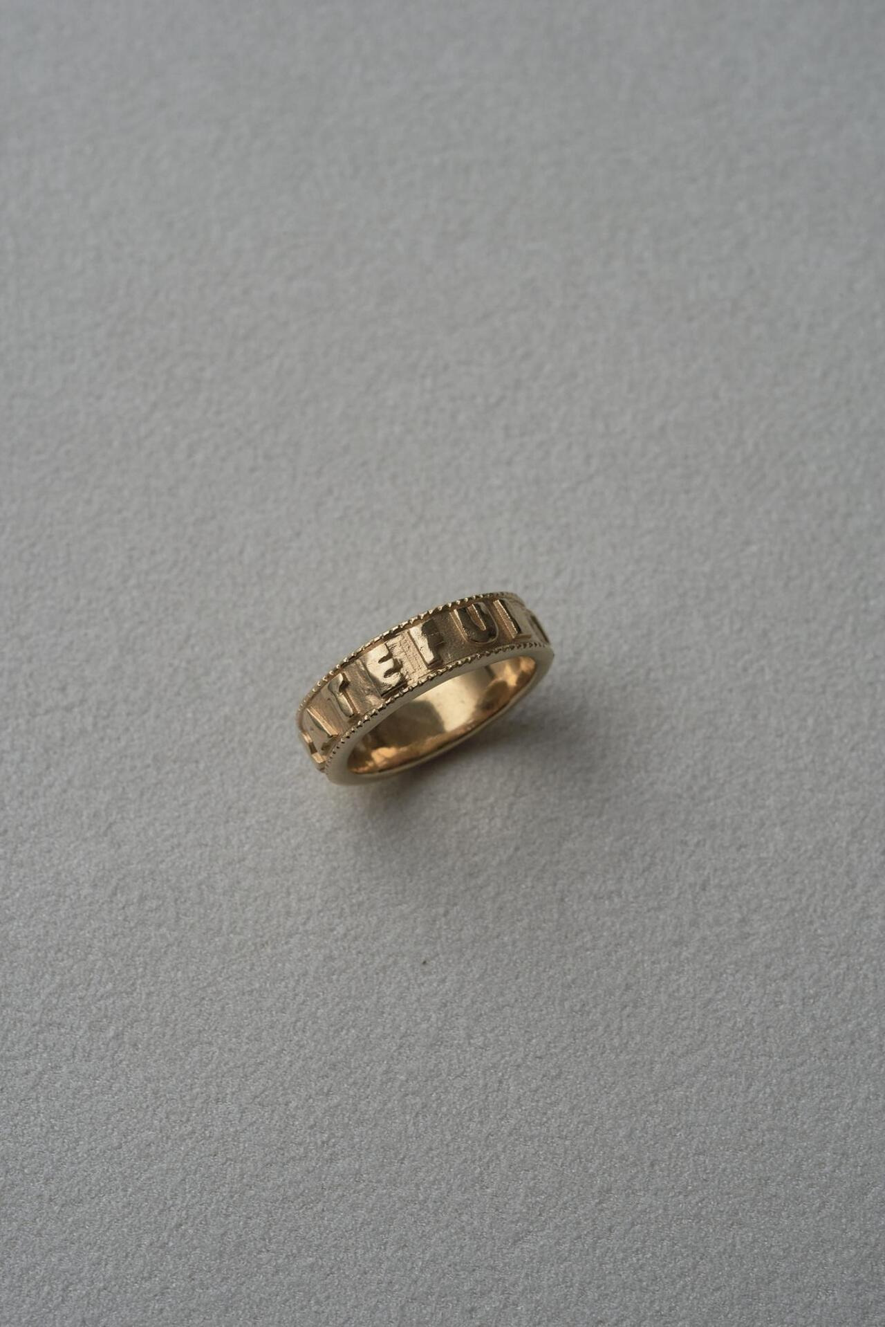 以職人手工雕刻刻上文字的戒指——「充滿感謝的慈悲」。