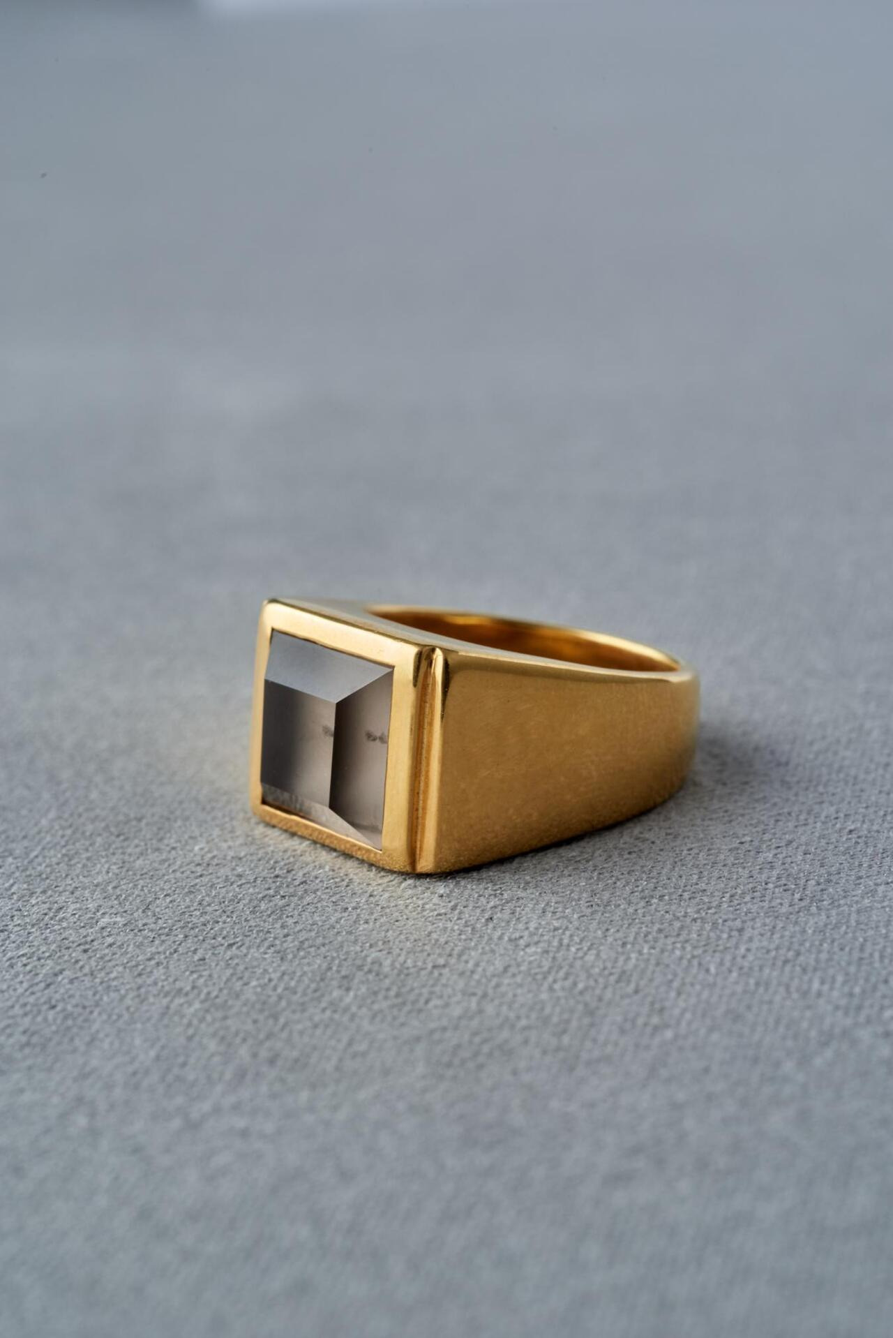 將祖父佩戴的戒指加以重新詮釋與升級之作。與 Lechoppe 的聯名設計,透過方形切割,充分展現煙水晶沉穩而深邃的美感。