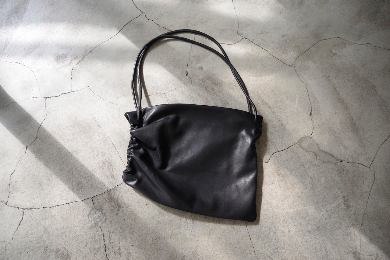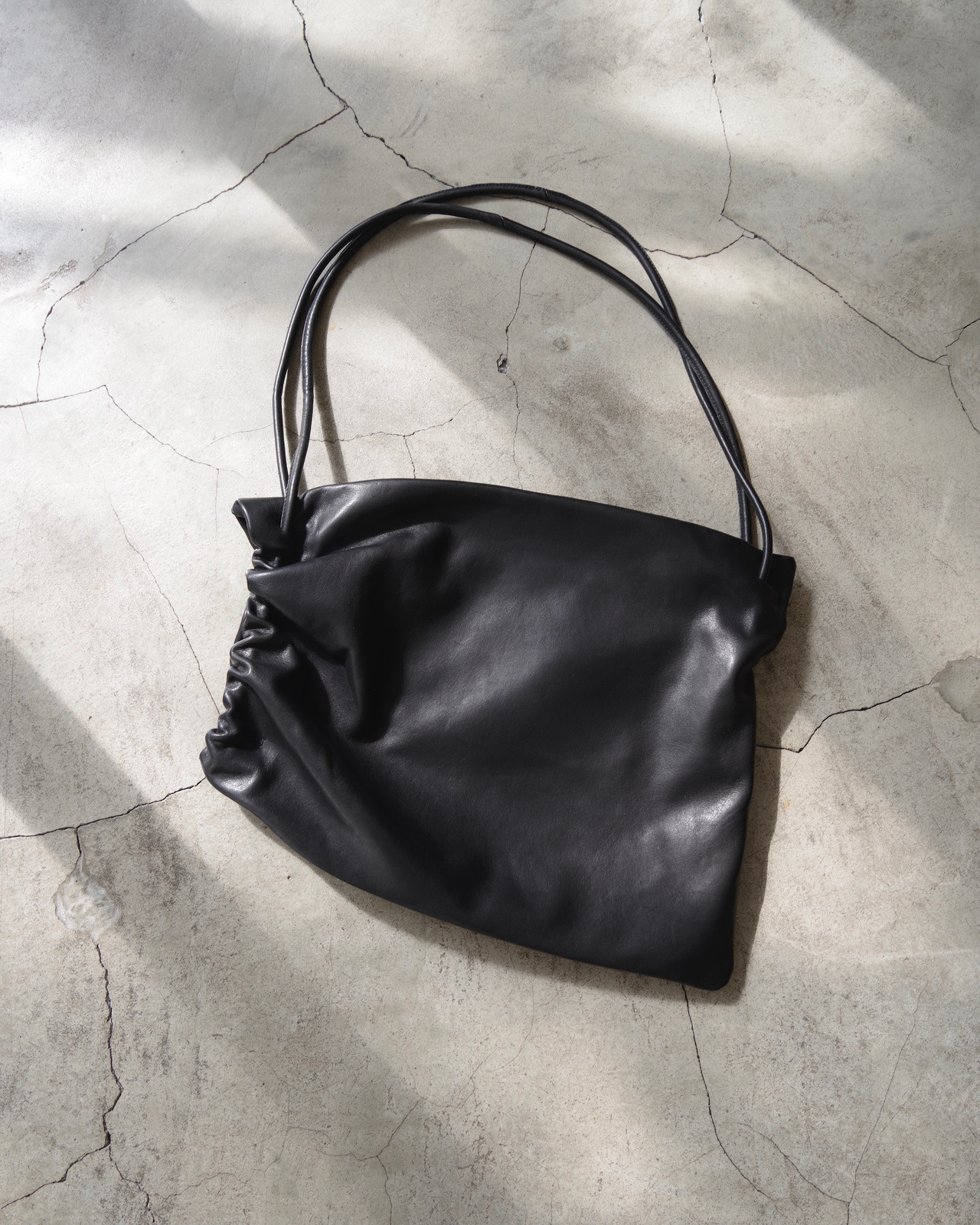 設有兩個內袋,背帶可藉由內裏的繩結調整長度,背袋也可收束至一側變化造型。選用柔軟舒適的小羊皮製成,質地貼合身形,展現細膩的天然紋理,兼具實用性與優雅美感。
