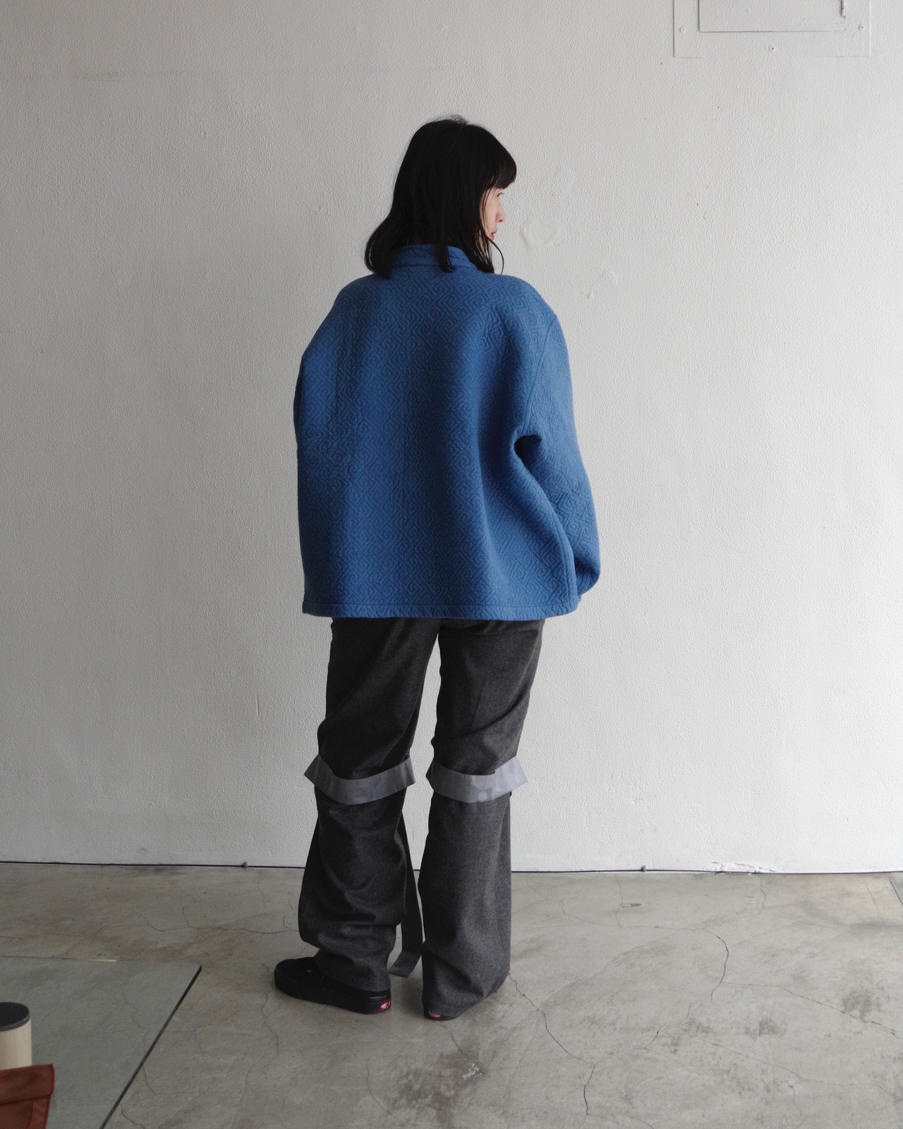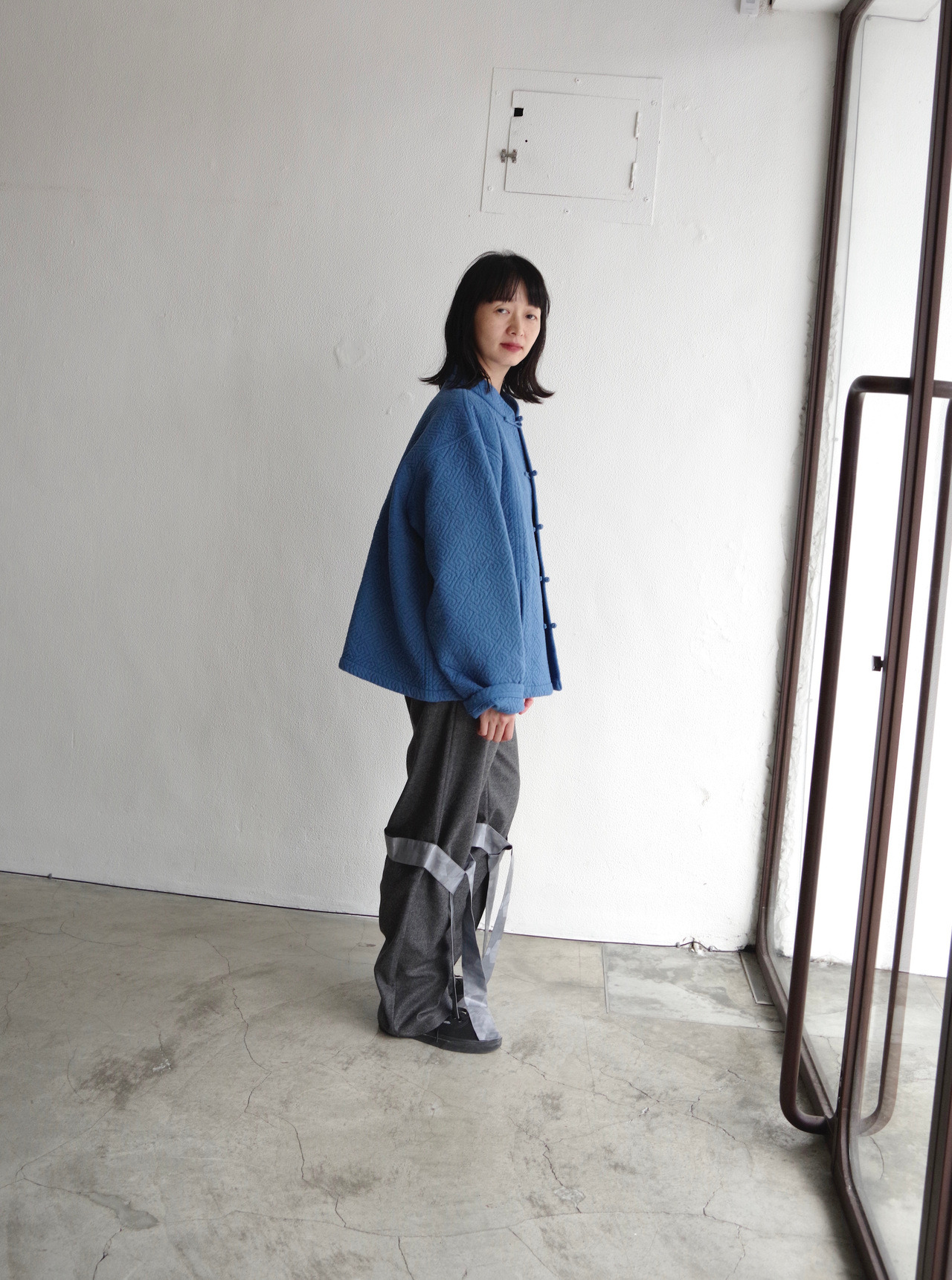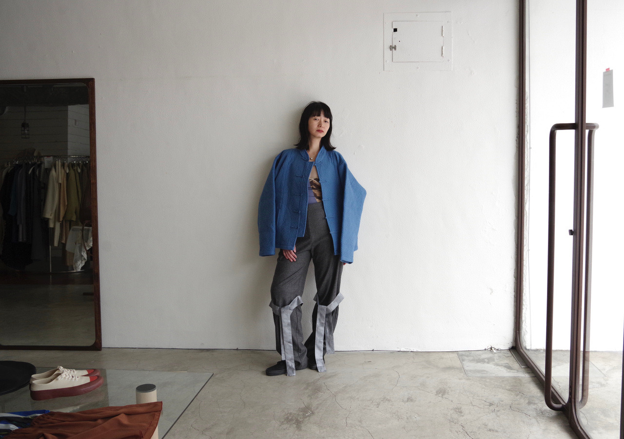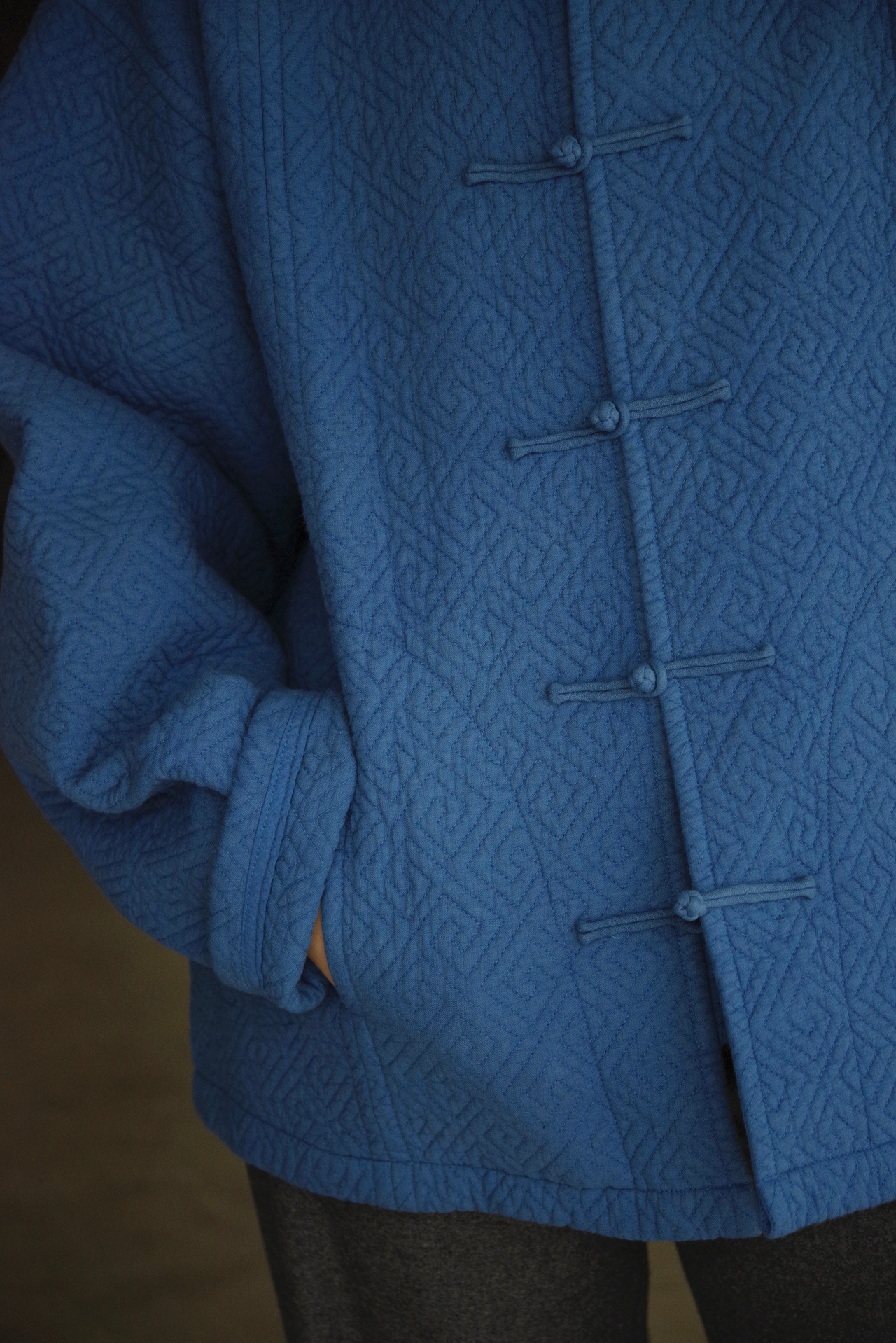 chinese quilted jacket in dusty blue
