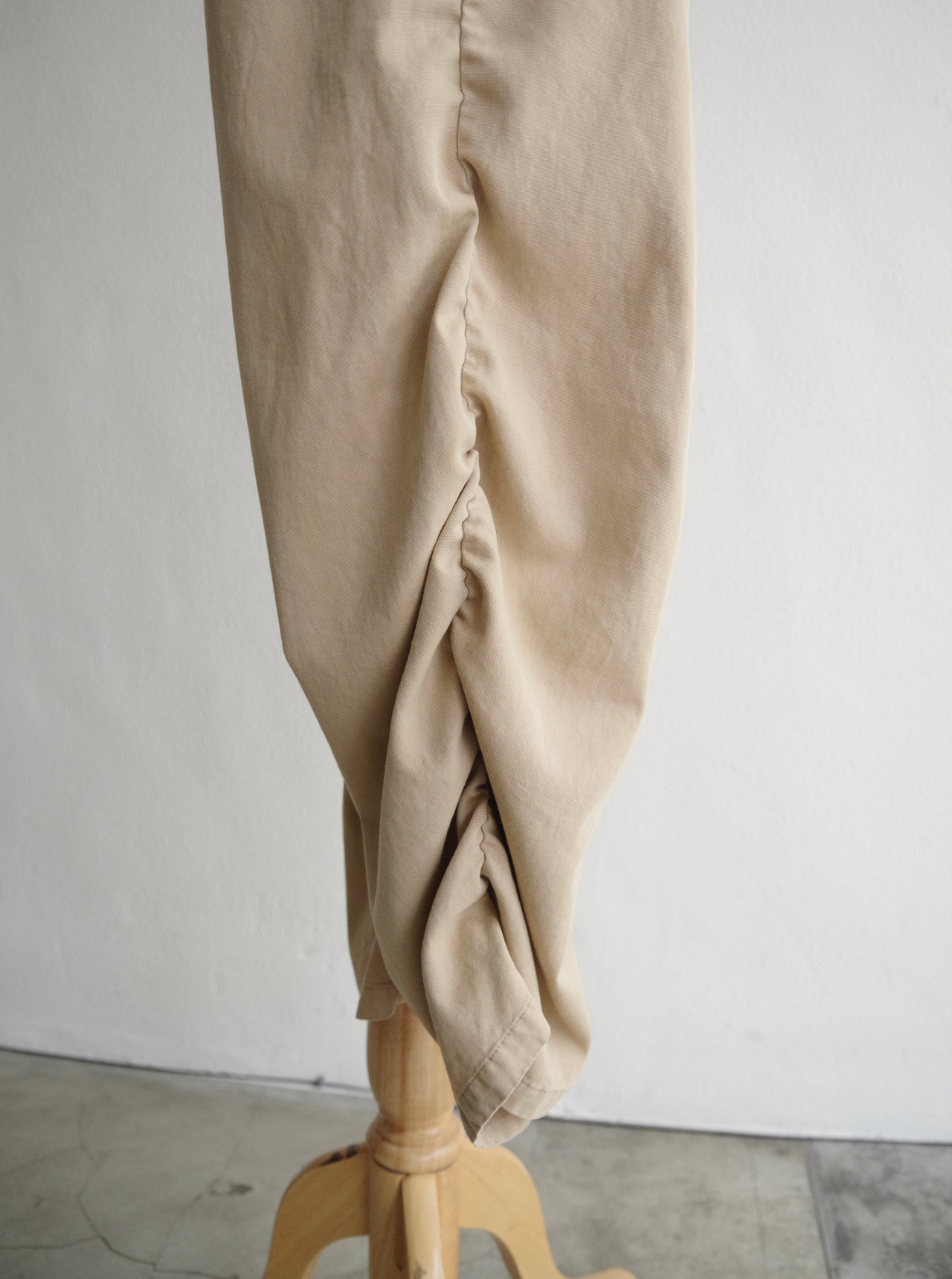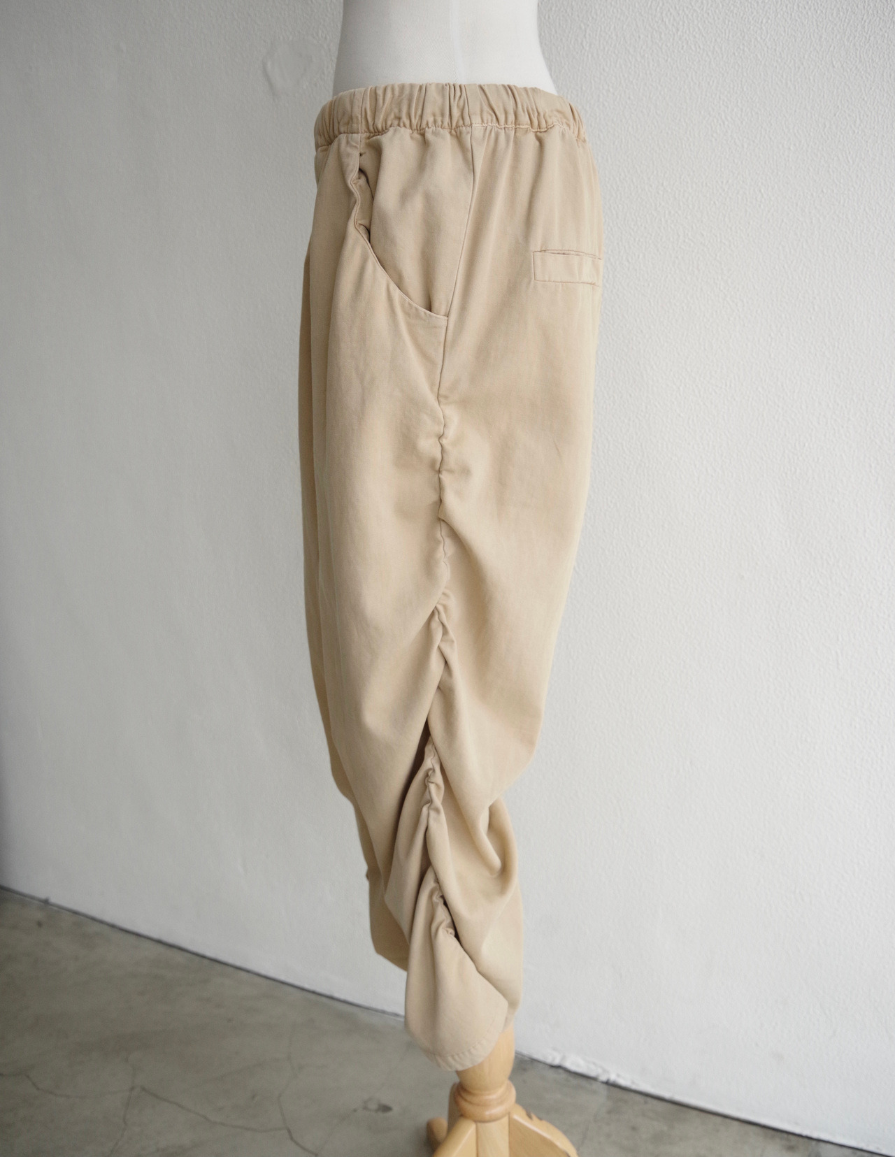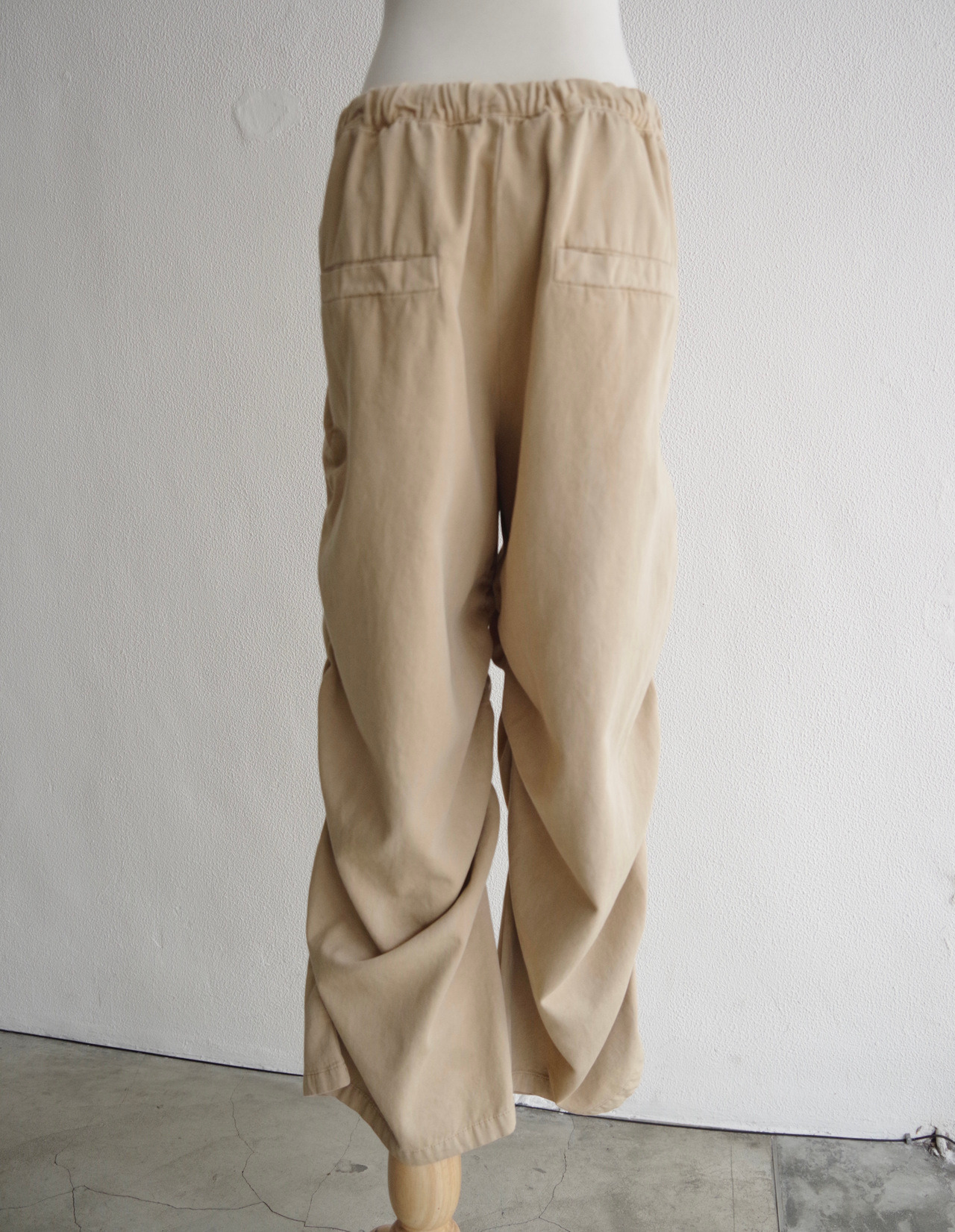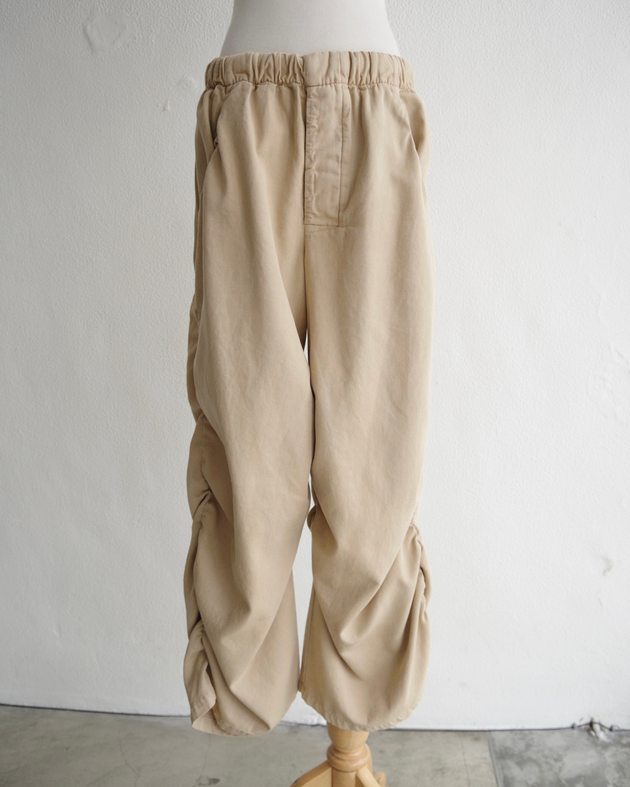 褲身的鬆緊細節不僅強化層次感,也賦予褲管自然的立體弧度與律動感。
