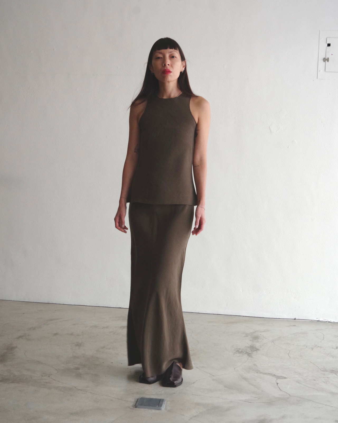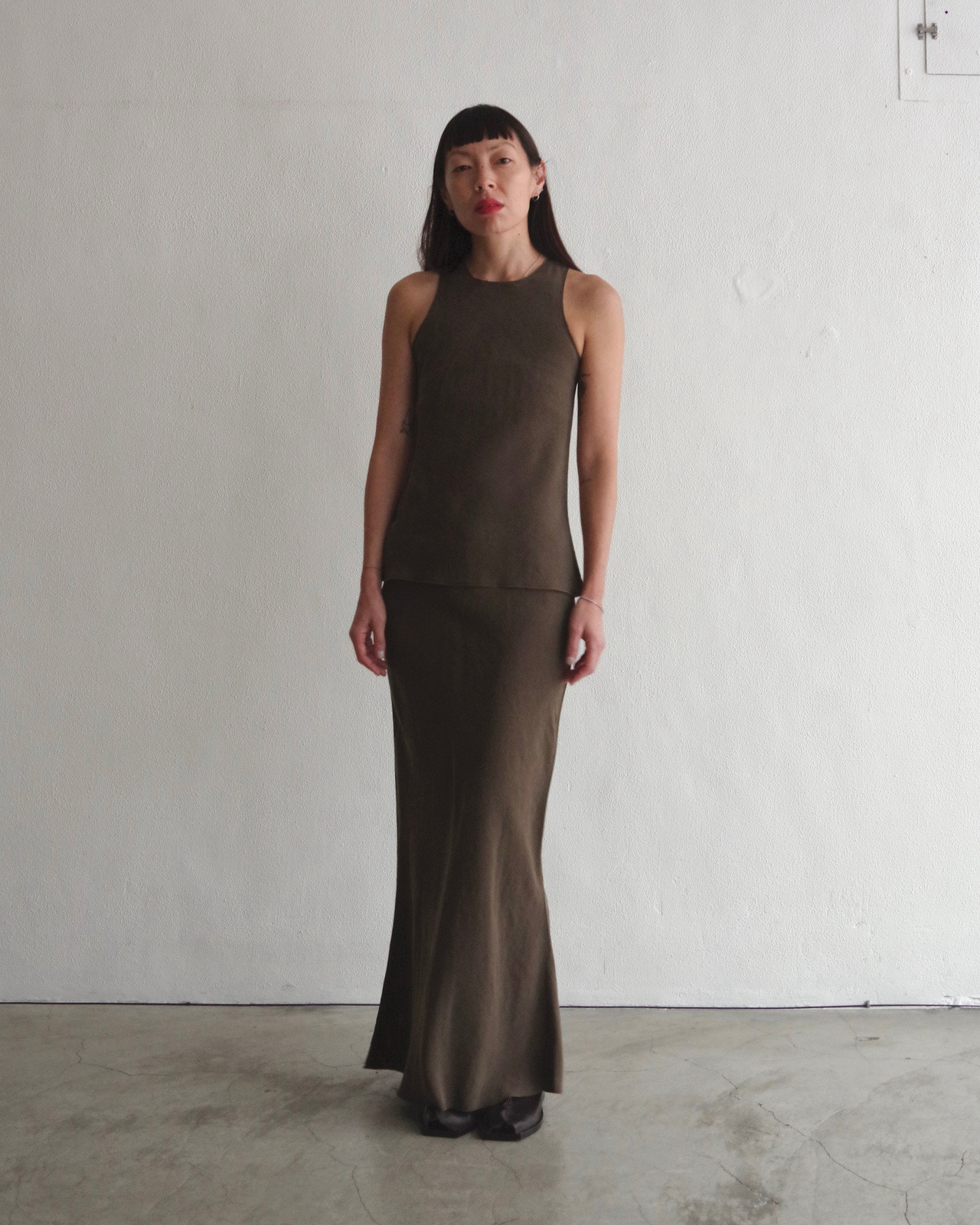 Size measurement 0 Length (front)86cm (back)94cm / Waist 88cm / Hips 92cm 1 Length (front)90 (back)97cm / Waist 94cm / Hips 98cm (腰部抽繩設計) Mette 165cm in size 0