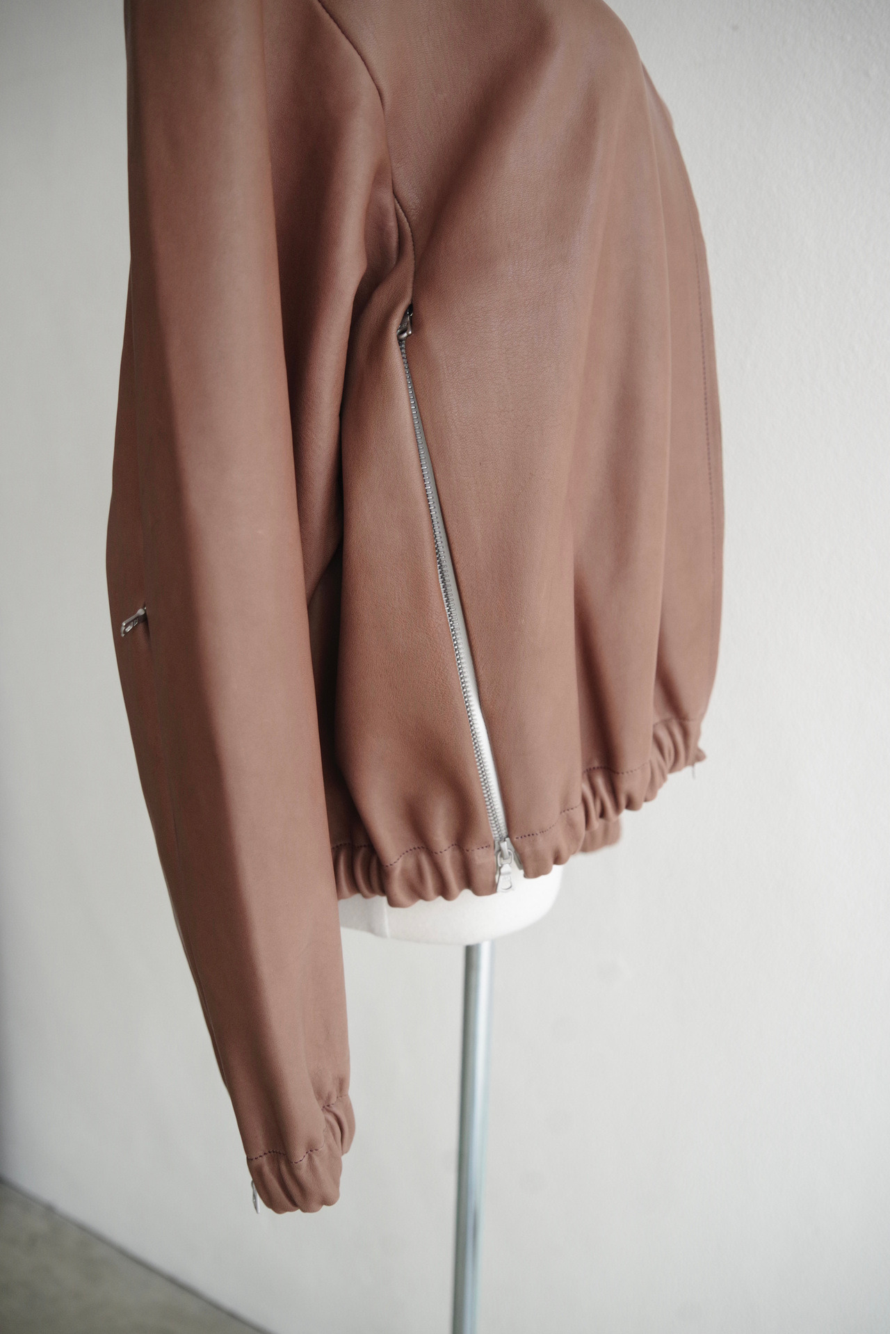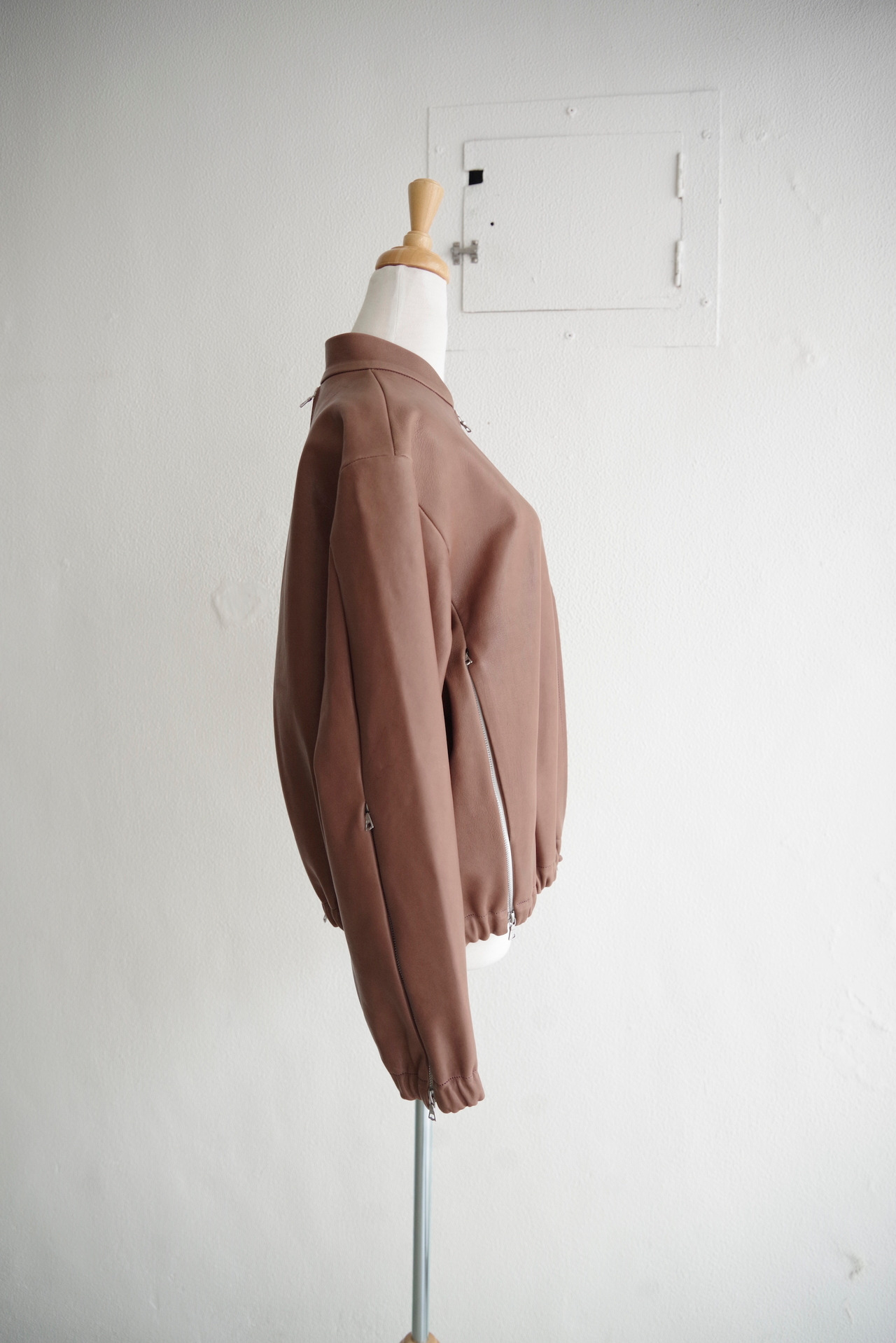 no.306 leather six zipper jacket in brown