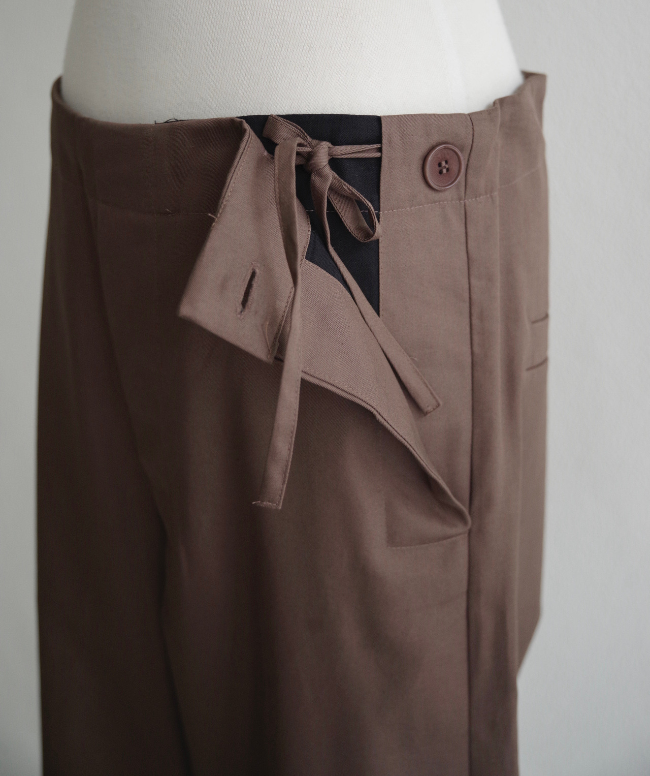 寬鬆版型 / 隱藏式扭釦 / 腰部內側抽繩與鈕釦設計 / 可調式褲腳設計