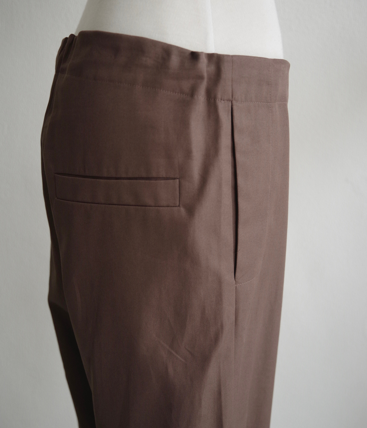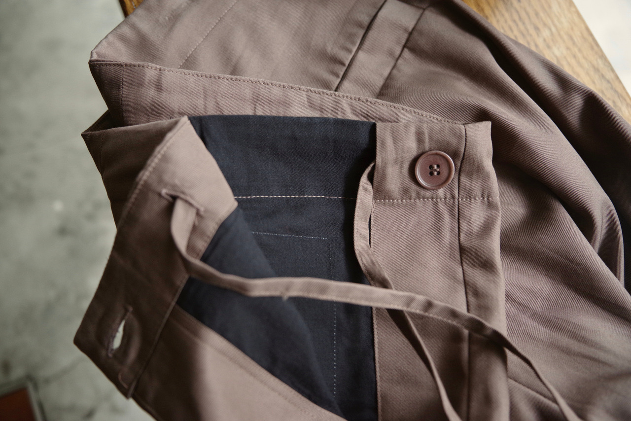 選用義大利頂級織造廠 Solbiati 的經典棉質斜紋布(Cotton Gabardine),Gabardine 帶有細密紮實、斜紋清晰的硬挺結構,整體手感厚實且富有層次,表面平整光潔,更襯托出俐落的剪裁線條。