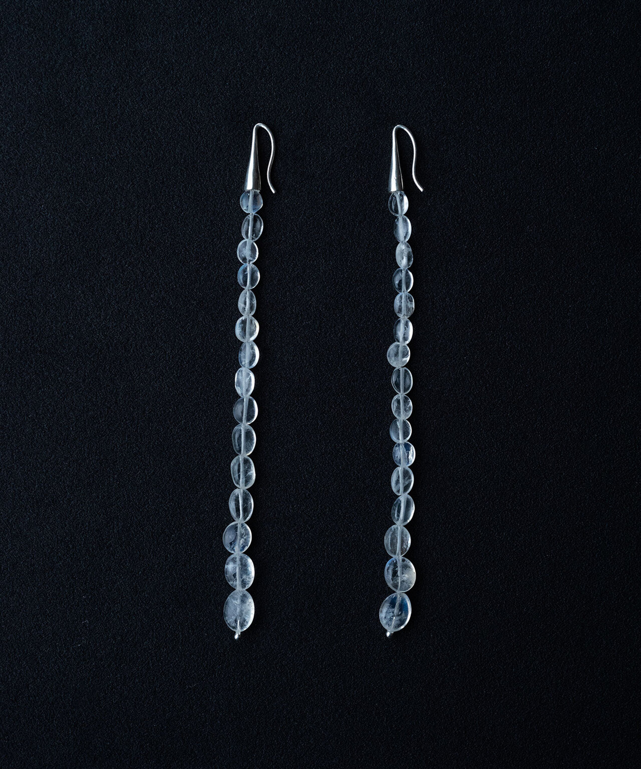 925 Sterling Silver, Moonstone Handcrafted in Japan 以優雅的漸層排列組合而成。月光石被視為能喚醒第六感的寶石。整體長度恰到好處,既適合日常佩戴,也能在特別時刻展現光彩。 Size Measurement 全長:約10.2 cm 單耳重量:約2.5 g